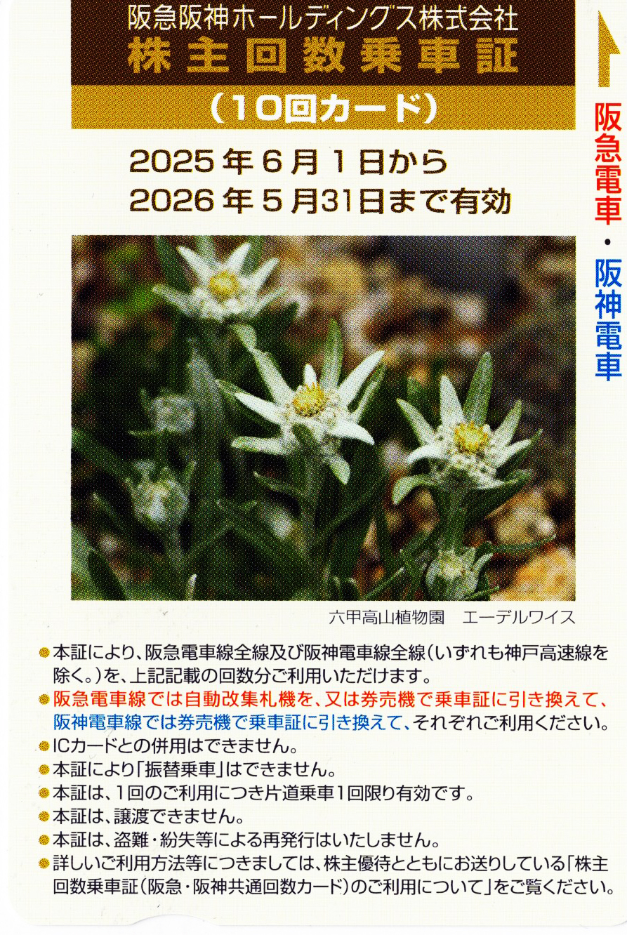 阪急阪神ホールディングス株式会社株主回数乗車証です。